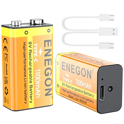 ENEGON 9V充電式リチウム電池 2個パック | 6F22 1100mAh Type-C急速充電対応 | エレキギター・モーター・煙探知機・マイクなど幅広高出力対応の高価買取