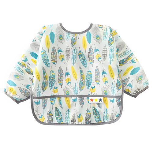 Canuboのお食事エプロンは、赤ちゃん用の長袖タイプで、ポケット付き。速乾、防水、軽量で、12ケ月~4歳向け。1枚から4枚セットあり、保育園にも最適。名前をかけるデザイン。