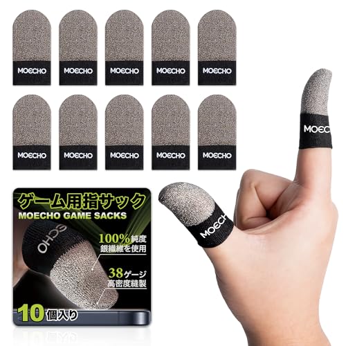 ゲーム用指サック。銀繊維・高密度縫製で超高感度タッチ。手汗対策、すべり止め効果。音ゲー、格ゲー、FPSに対応。指紋・静電気防止。全指対応の10個入り(シルバー)。