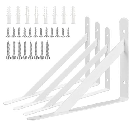 ANDCHI L字型棚受け金具4本セット。サイズ200mm*120mm*16mmのホワイトアングルブラケット。壁掛け吊り棚に最適。ビス付きで取り付け簡単。