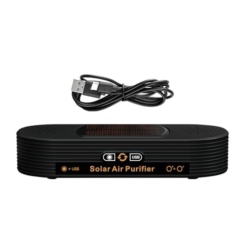 USBおよび太陽光発電対応の静音車載空気清浄機。アレルギー対策、ペットの臭いやホコリを効果的に除去。家庭用やオフィスでも使用可能。