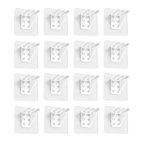 MULT棚受けは、穴開け不要で棚ダボなしの強力粘着フックです。L字型のアングルブラケットを採用し、賃貸でも安心の透明デザイン。16個セットで、接着テープ付きで手軽に取り付け可能です。