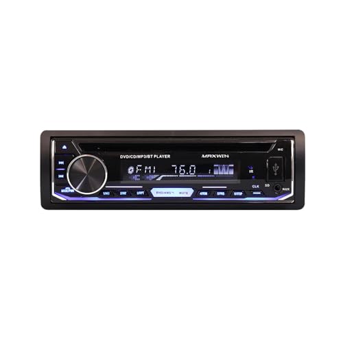 MAXWIN DVDプレーヤー 車載1DINデッキ。HDMI出力、DVD/CD、Bluetooth接続、スマホ(iPhone/Android)対応。MP3やラジオAM/FM、USB再生可能。12V対応のDVD309モデル。