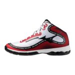 ミズノのウエーブダイバース DE 2はフィットネスシューズで、ホワイト×ブラック×レッドのデザイン。サイズは23.5cm、幅は2E。快適な履き心地と安定感を提供し、トレーニングに最適です。