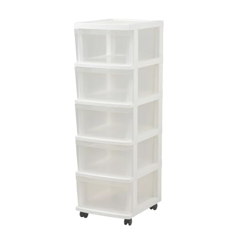 JEJアステージ(収納チェストエミング)は、5段のキャスター付きホワイトチェストです。日本製で、簡単に組み立て可能。サイズはW340×D420×H680mmで、収納力に優れています。