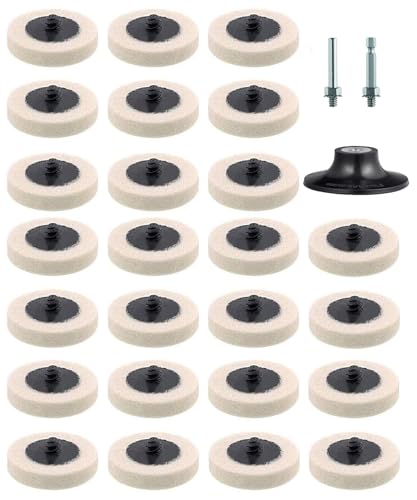 TerraShineのフェルトバフは直径50mm、羊毛製で、研磨や仕上げに最適です。六角軸付きで取り付け簡単。28個セットで金属や車磨きに便利です。