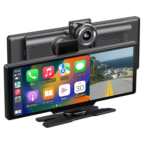 10.26インチタッチスクリーンのカーオーディオ一体型。CarPlayとAndroid Autoに対応、ワイヤレス接続、1080Pリアカメラ、分割表示、音声コントロール、Bluetooth/AUX/FM付き。簡単取り付け、64GBメモリカード付属。