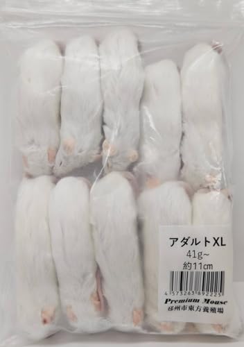 邑楽ファームの冷凍プレミアムマウス(アダルトXL)は、爬虫類や両生類専用の高品質な餌です。栄養価が高く、ペットの健康をサポートします。冷凍だから長持ちし、使いやすいサイズです。