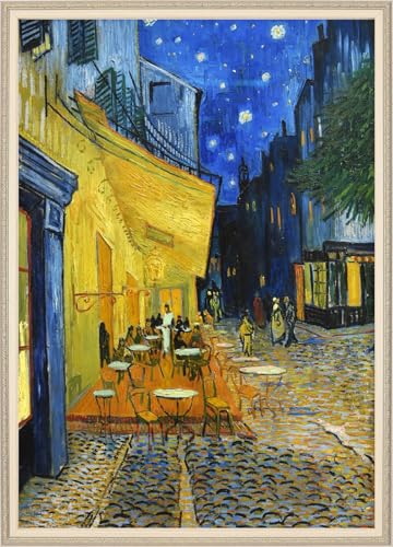 ゴッホの名作『夜のカフェテラス』をA2サイズで再現したアートポスター。インテリアに最適で、白と金色のフレームが高級感を演出します。壁紙としても使用可で、部屋を華やかに彩ります。