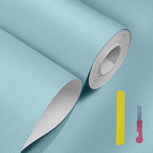 bumxca 壁紙シール 60CM×5M ブルーグリーンのリメイクシート。超厚手で凹凸質感、布地風。全20色展開、はがせて使いやすい。防カビ・防水・防汚・耐熱仕様。リビングやキッチンなどの多用途に最適。壁紙用ツール付き。