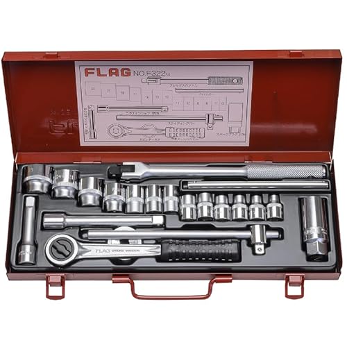 ソケットレンチセット差込角3/8インチ(9.5mm)F322M-Fは、強力なトルクを提供し、耐久性に優れた工具です。多様なサイズが揃っており、整備や修理作業に最適です。