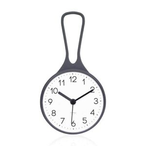 mooas ループバスルーム/防水シャワークロック、フック付き吊り下げ式、キッチンクロック、静音・電池式 (グレー)