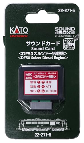 KATO Nゲージ サウンドカード DF50 ズルツァー搭載機は、リアルな運転音を再現する鉄道模型用アイテムです。高品質なサウンドエフェクトが楽しめ、Nゲージレイアウトに最適です。型番は22-271-5です。