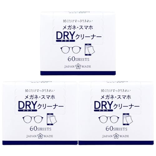 メガネ・スマホ用DRYクリーナー60枚入。極細繊維入りの不織布で、汗や油汚れをしっかり拭き取り、ノンアルコールのため安心。パソコンやタブレット、カメラレンズなど多用途に使用可能。