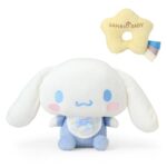 サンリオの赤ちゃん用ぬいぐるみセット。シナモロールデザイン。かわいらしいラトル付きで、洗えるため清潔に保てます。赤ちゃんの遊びやハグに最適!