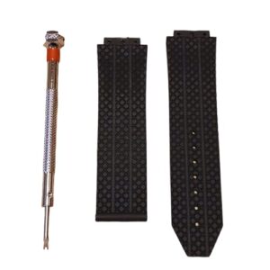 (Manaheart) ウブロ専用 ラバーベルト 24mm ウブロビッグバン ソフトシリコン 社外品 互換品 ラバー ゴム 非純正品 交換用 予備用 ドライバー付き 赤ステッチ 穴あけポンチ 編み込み アレルギー アーミー アンティーク 13mm 8 14mm ブランド チャーム 台座 エンドピース エイジング エイ 太め フォッシル フッ素ゴム ゴムバンド 互換 (ブラック)