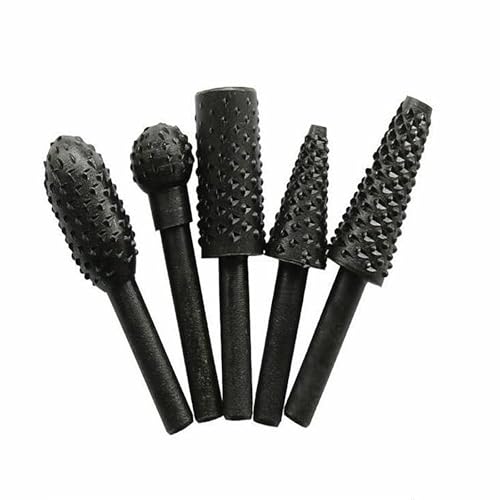 カーボンスチール製のロータリーバリラスプ5個セットです。木工、金属、プラスチックの彫刻に最適で、ドリルやロータリーツールに対応。精密な仕上げが可能です。