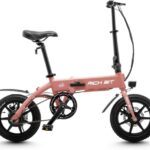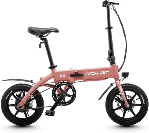 RICHBIT CITY ASSISTは、折りたたみ型の電動アシスト自転車で、公道走行可能。最大80kmの走行が可能で、軽量でおしゃれなデザイン。免許不要で通勤や街乗りに最適。14インチホイール、カラーはサクラピンク。