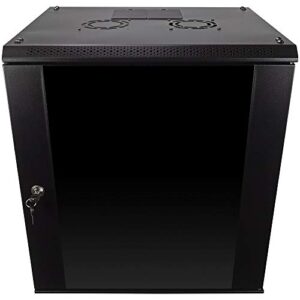 NavePoint 12U サーバーラックエンクロージャ ガラスドア、冷却ファン、ロック、取り外し可能なサイドパネル付き – 12U ウォールマウントネットワークキャビネット 19インチラック 奥行17.7インチ (450mm)