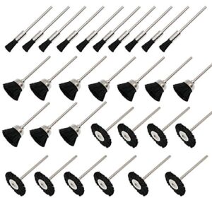 NIUPIKA ソフトナイロン毛ブラシ カップ ワイヤーブラシセット クリーニング研磨アクセサリー 2.35mmシャンク ロータリードリルツール用 30本パック