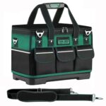 このツールバッグは2way使用が可能で、軽量且つ頑丈な設計。防水仕様の蓋付きで自立し、仕切りがあるため道具を整理しやすい。肩掛けベルト付きで持ち運びも便利。車載用にも適した23インチの四角いデザイン。