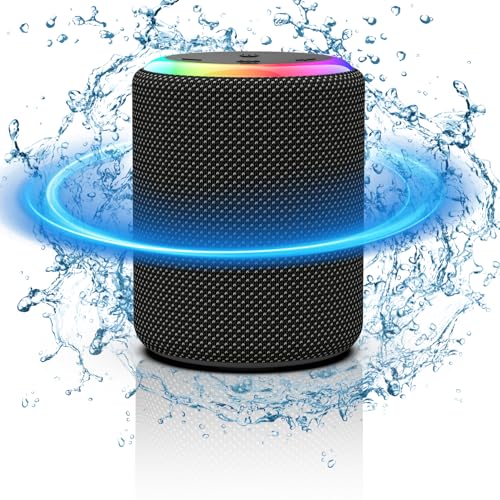 2025年モデルのBluetoothスピーカー。IPX7防水、LEDライト付きでバスルームに最適。深いバス音質、ポータブル設計、Type-C充電、Bluetooth 5.3対応。TFカード/AUX互換あり。