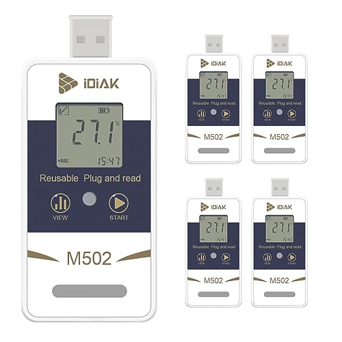 M502温度データロガーは再利用可能なUSB温度/湿度レコーダーで、14400ポイント収集、高精度。PDFとExcelデータ提供。冷蔵庫温度計に最適な20個パック製品。