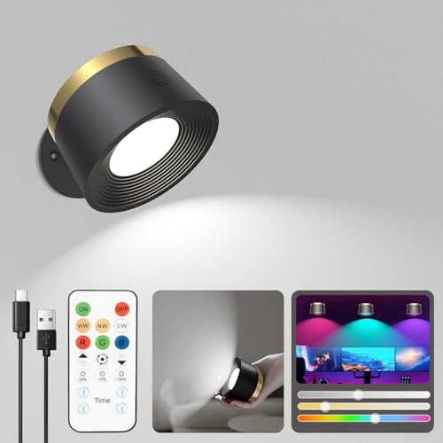 LEDスポットライト ブラケットライト リモコン付き壁掛け 3色温度と13 RGBと調光可能磁気360°回転LEDマグネット充電式 ウォールライト工事不要 ベッドサイド/カウンタートップ/壁/玄関/キッチン/浴室/階段に使用可能 間接照明 読書灯 地震災害用非常灯Tpye-C 充電式コードレス2in1タイプ(1個ブラック)