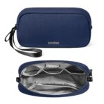 tomtocの小型ガジェットポーチは、自立・軽量設計でPC周辺小物やDJI Osmo Pocket 3に対応。撥水性があり、出張や旅行、通勤に便利なバッグインバッグ。ネイビー色でスタイリッシュ。