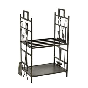 暖炉用品・アクセサリ 二層薪ラックログ収納ラックウッドホルダー、4つの暖炉ツール付き、屋内と屋外の薪の積み重ね保管、安定した金属鉄の芸術に使用されます