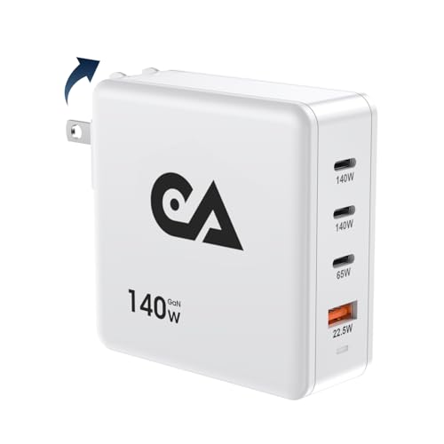 PD140Wは140Wの急速充電器で、4ポートを備えPD3.0、QC3.0、PPS、SCPに対応。折りたたみ式プラグでコンパクト設計、4台同時充電可能。MacBookやスマートフォン、タブレットに最適。