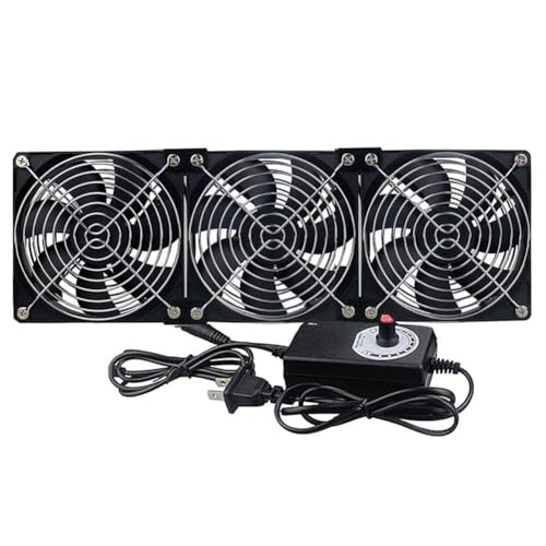 3連式120mm x 25mmの冷却ファン。AC 100V〜240V対応で、窓用や温室、自動車中泊の換気に最適。スピードコントローラー付きで風量調整が可能。