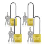 ロングシャックル高耐久南京錠4個パックは、屋外や学校、ジムのロッカー、荷物用に最適です。真鍮製で防錆性が高く、耐久性に優れています。鍵付きで安全性もあり、安心して使用できます。