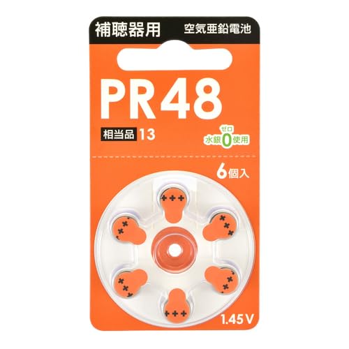 オーム(OHM)オーム電機 補聴器用電池 補聴器用空気電池 空気亜鉛電池 補聴器 電池 PR48 6個入 相当品13 水銀0使用 PR48B6P 08-4148の製品情報
