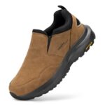 FitVilleの幅広スリッポンは、メンズ向けの2Eと4Eサイズを展開。ハイキングやアウトドアに最適なトレッキングシューズで、手を使わずに立ったまま履けるデザインです。