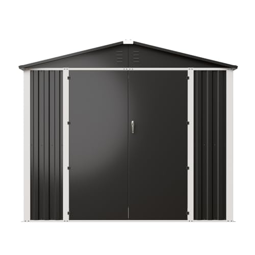 GRESSの大型メタルシェッドは、ダブルドアの観音開き設計で、8×6フィートのサイズを持ちます。簡単に組み立て可能で、屋外の収納に最適です。法人や個人宅への配送は不可です。