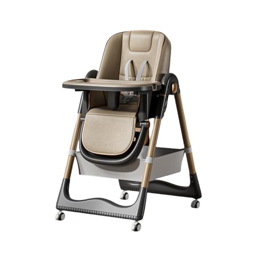 ハイ&ローチェアは、高さ調節可能で5点式セーフティハーネス付き。2段テーブルとキャスターで移動簡単。6ヶ月~5歳向け、組み立てやお手入れもラク。出産祝いにも最適なブラウン色のベビーチェアです。