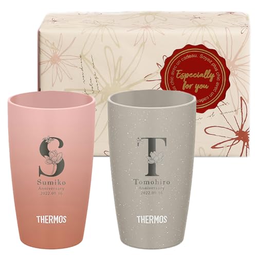 名入れ ペア タンブラー ギフトボックスセット 記念日 プレゼント 保温 保冷 真空断熱タンブラー 340ml フラワーフォント 箱入り (ローズベージュ×アッシュグレー) 高価買取中