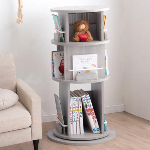 タンスのゲンの回転式絵本ラックは、アッシュグレーの5段収納本棚。図鑑にも対応し、回転機能でアクセスが便利です。49600317(101660)商品番号。
