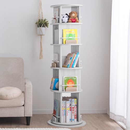 タンスのゲンの回転式絵本ラック(49600317)は、5段の収納スペースを持ち、ホワイトアッシュ仕上げでスタイリッシュ。図鑑にも対応し、回転機能でアクセスが便利です。