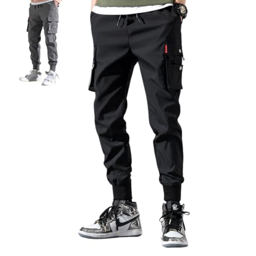 KakiKhakiのカーゴパンツは、メンズ向けの多ポケットデザインで着心地抜群。スリムなシルエットが特徴のミリタリースタイルで、ジョガーパンツとしても活躍。カジュアルから作業着まで幅広く使用可能。サイズはLL、カラーはブラック。