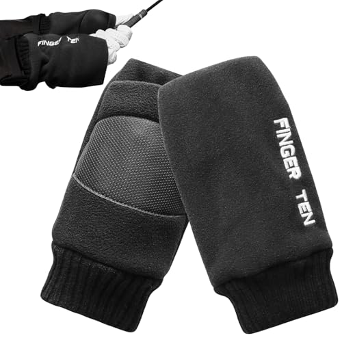 ゴルフ用防寒手袋。フリース素材で柔らかく、裏起毛により高い保温性。ミトンタイプで両手用、メンズ・レディース兼用。アウトドアや冬のゴルフに最適。ブラックの滑り止め加工あり。サイズL。