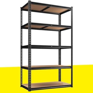 FRRBIG スチールラック 大型 物置 家電収納棚 作業台 物品 陳列 整理 保管 棚 メタル キッチン シェルフ ラック 倉庫収納 高さ調節可能 連結可能 オープンシェルフ 組立簡単 高い耐荷重能力 耐荷重200kg/段 大容量ストレージ スチール 業務用/家庭用(サブフレーム 5段 黑+黄,120x50x200cm)
