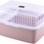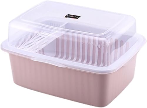 Bivoyud水切りラックは大容量で、蓋付きの食器収納ボックス。防塵・防汚・抗菌機能があり、家庭用や業務用に適しています。多機能でキッチン整理に便利です。(ピンク,小さい)