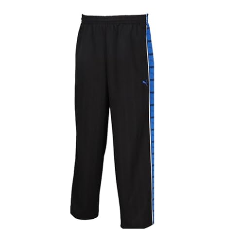 プーマのSHADOW STRIPEニットパンツは、メンズ用のスポーツウェアで、Lサイズのブラック×ブルーのデザイン。快適な着心地と動きやすさを提供し、カジュアルなスタイルにも最適です。