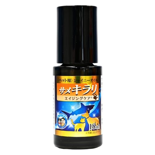 サメキラリ ペット用シャイニーオイル 18mlは、愛犬・愛猫の被毛を健康的に保ち、ツヤを与えるオイルです。天然成分配合で、優れた保湿効果があり、毛の絡まりを防ぎます。敏感肌のペットにも安心して使用できます。