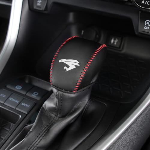 トヨタ ハリアー 80系専用のシフトノブカバー。PUレザー製で、引っかき傷や汚れを防止。エンブレム付き、ブラック×赤糸のデザインが魅力的な内装アクセサリーです。