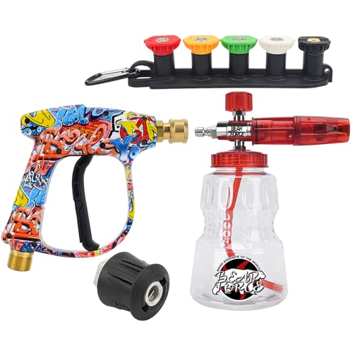 BEARFORCE高圧洗浄機ガンはKarcher K2〜K7対応。5種のスプレーチップ、ベルトクリップ、ホースコネクター、フォームキャノン付きで多用途に活躍します。