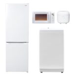 新生活家電4点セットは、コンパクトでスタイリッシュなデザインが特徴。セット内容は、炊飯器、電子レンジ、トースター、電気ケトルの4点。省スペースで機能的、忙しい日常にも最適です。