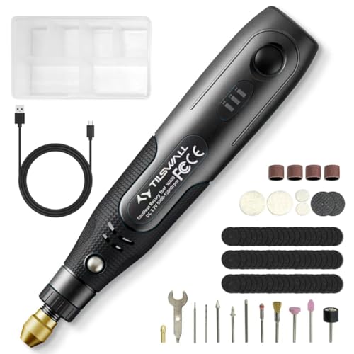 Tilswallミニコードレスロータリーツールは、3速調整、3.7Vのパワー、82個のアクセサリーを搭載。USB充電対応で、サンディング・研磨・穴あけ・切断など多目的に使えるDIYツールです。